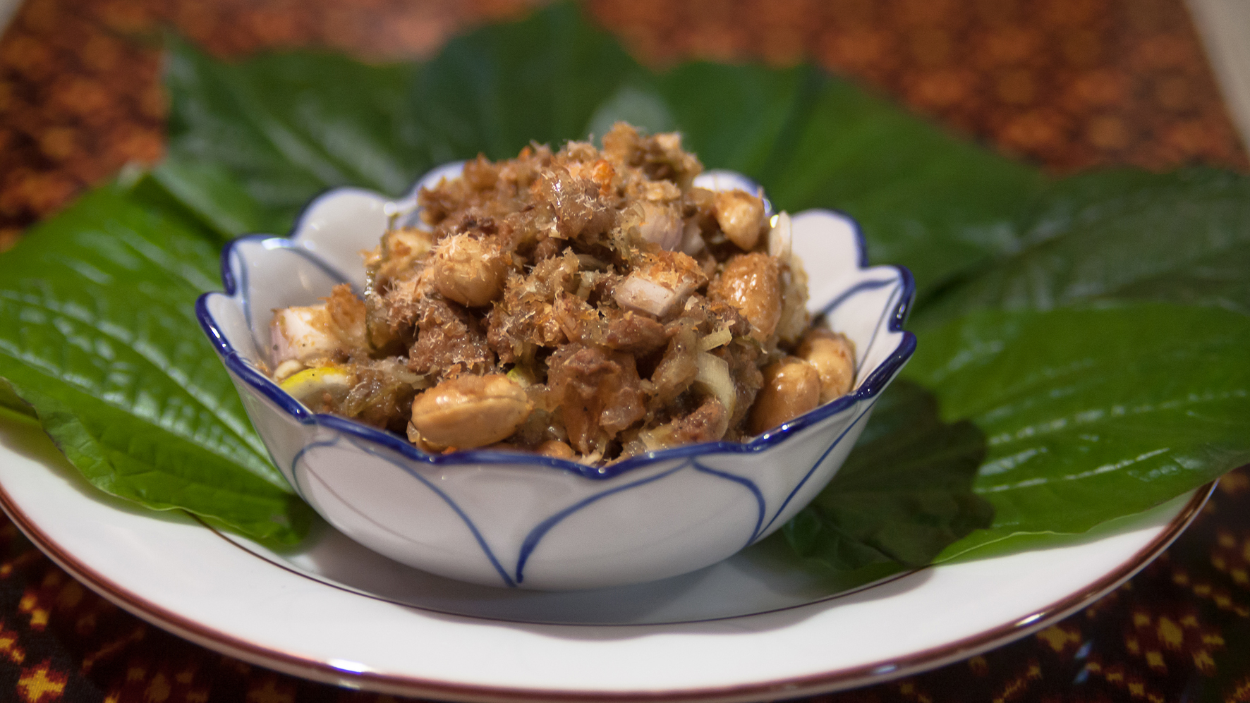 mijotés avec de la citronnelle, du poivre vert, d'échalotes, sucre de palme,du gingembre servi avec du citron vert, cacahuète gingembre